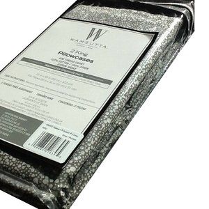 GRAY PEBBLE PATTERN Wamsutta 400 TC 100% Cotton Sateen King Pillowcases NEW