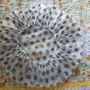 GRAY Polka Dot Plastic Shower Cap Hair Cover Waterproof Reusable Elastic