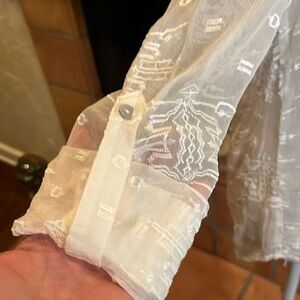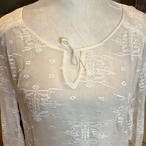 GRAY Saks Fifth Avenue Sheer Ivory Embroidered Blouse, XS!