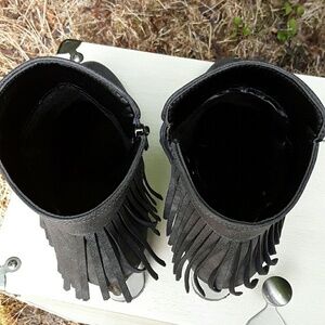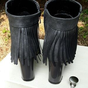 Rounded toe gray fringe give these boots a classic chic look. Gently used in excellent shape.