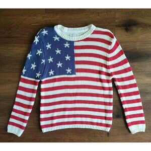 GRAYSON THREADS Sweater Flag Crew Neck Knit Small Lightweight Patriotic Pullover