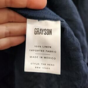 GRAYSON The Hero Linen Button Down Shirt L Navy Minimalist Beach Coastal Fall.