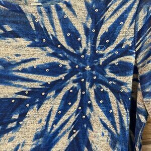 GRAYSON Womens Floral Rhinestone Embellished 3/4 Ruched Sleeve Top Size PS