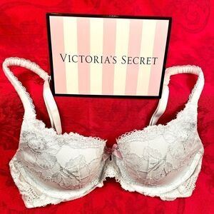 GRAY w SILVER METALLIC LACE LINED DEMI 32C BODY BY VICTORIA