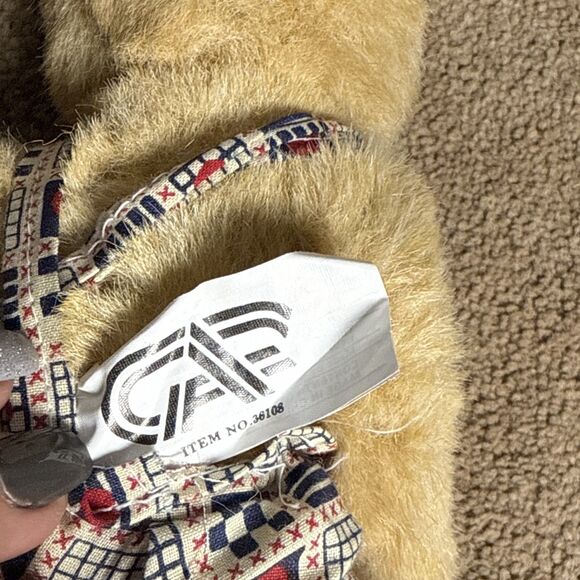 GREAT AMERICAN FUN CORP JOINTED ARMS TEDDY BEAR PLUSH VINTAGE APPLE OVERALLS