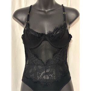 GREAT CONDITION Classic Sexy Floral Lace Underwire Teddy Bodysuit SIZE small bla