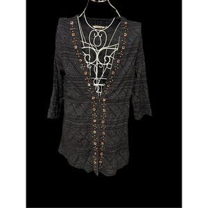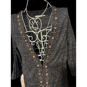 GREAT CONDITION Soft Surroundings Sweater 3/4 SleeveBeatrice topper Beaded Cardigan Top Womens Large Tunic grey Long Sleeve Soft Top Tunic Sz large