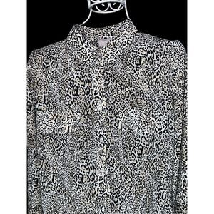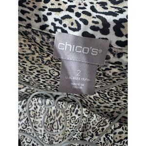 GREAT CONDITION WOMEN CHICOS WRINKLE RESISTANT ANIMAL LEOPARD BLOUSE TAN GRAY BLACK RET $59.95 Button down BLOUSE CHICO SZ 2 (US SIZE 12/14)