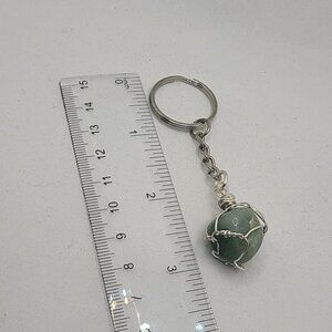 Keychain: Stainless steel with a silver tone wire-wrapped, natural gemstone, packed in a cellophane bag.