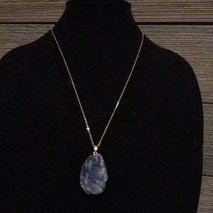 Natural Crystal Quartz pendant in blue tones on 14K gold plated chain(48cm+6cm). Would make a great gift!