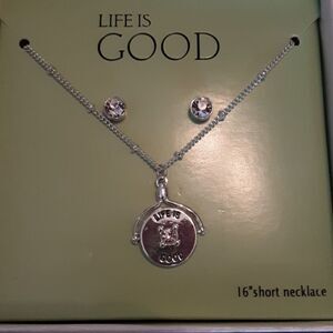 GREAT 🎁! NWT Silver 16" LIFE IS GOOD Necklace & Earring Gift Set 🔥