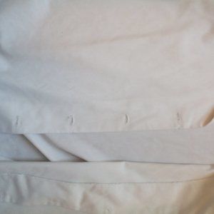 Collar ,regular buttons, one black on top. Has some blemishes which are shown in pictures. Stains on pits. Excellent work shirt.