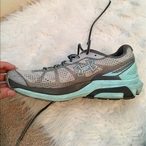 These were only worn four times!! They are designed to correct running form and heal shin splints! Coral insoles, only issue is kind of dirty on the bottom from the track (but who will see that?) SUCH a great pair of shoes cost me $200 originally so this is my LOWEST!