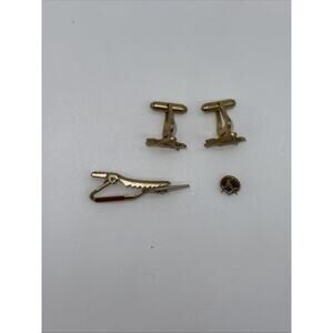 GREAT VINTAGE SET OF MASONIC GOLD CUFFLINKS & TIE BAR. Pin BY ANSON 5 Piece