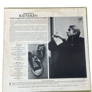 Keywords: Rod McKuen, Greatest Hits, vinyl LP, classic folk, poetry-infused, Warner Bros. Records, 12" record, high-quality sound, original artwork, stereo, English, pre-owned, music lover, cozy evening, thoughtful gift.