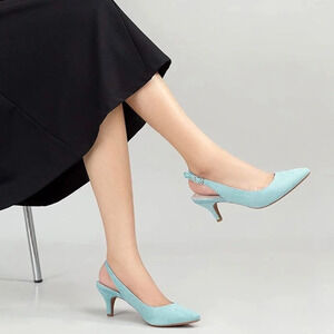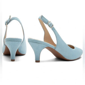 GREATONU NWOT Suede Slingback Kitten Heel Pointed Toe Dress Pumps in Light Blue