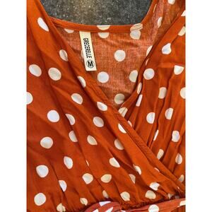 GRECERELLE Polka Dot Wrap High-Low Maxi Dress, Orange, M, Pre-Owned