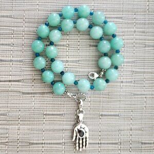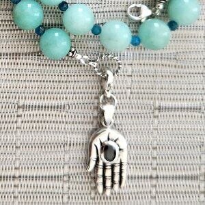 GREEN AGATE NECKLACE WITH 925 STERLING SILVER HAMSA PENDANT.