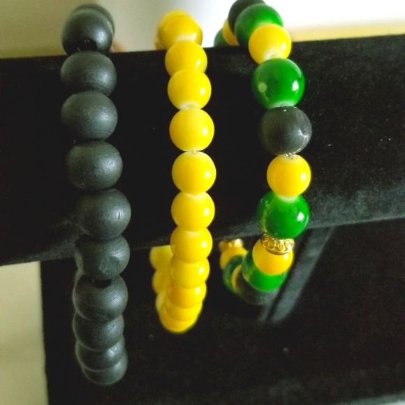 GREEN, BLACK AND YELLOW HANDMADE BRACELET. B20006