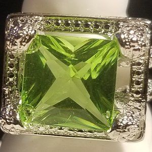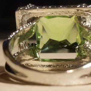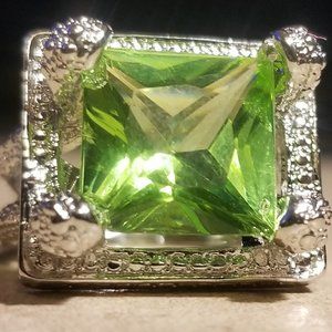 GREEN CRYSTAL RING SIZE 8.5 FREE MATCHING HOOPS!!