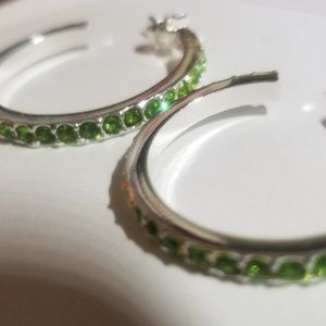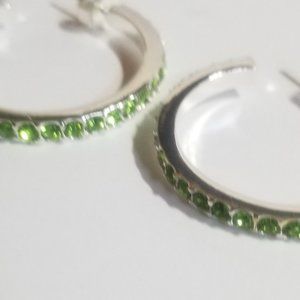 STUNNING GREEN CRYSTAL RING SIZE 8.5 SILVER TONE WITH OVERSIZE PRONGS ... THIS RING IS A SHOWSTOPPER PAIRS WELL WITH SOME OTHER ITEMS IN MY CLOSET.. THIS IS A GREAT COCKTAIL RING !!! STUNNING GREEN CRYSTAL RING SIZE 8.5 FREE MATCHING HOOPS .. THIS SET IS SO CUTE !!! I ALMOST KEEP IT !!!!!