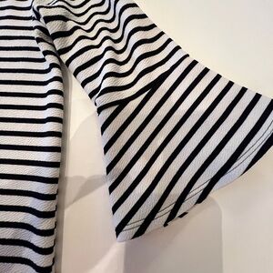 GREEN ENVELOPE BELL RUFFLED SLEEVE BLACK & WHITE STRIP TOP. SIZE. MEDIUM