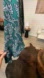 Green printed crepe (100% Polyester). Top. V-neckline. Long sleeves. 28" from shoulder to hemline.