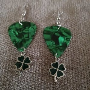 Selling Women's GREEN GUITAR PICK EARRINGS WITH SILVER TONE SHAMROCK CHARMS EARRINGS