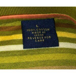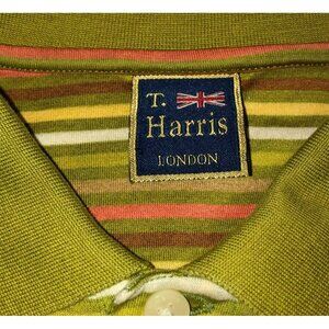 GREEN ORANGE STRIPED POLO SHIRT SZ L RETRO T HARRIS LONDON 100% COTTON MENS
