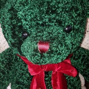 Dan Dee Collectable Vintage Plush Christmas bear with red embroidered velvet bow. @2 inches from toe to ear. Excellent condition