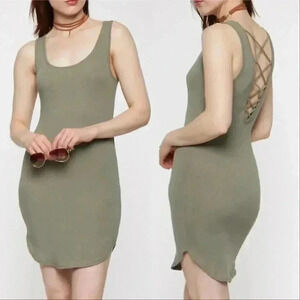 GREEN RIBBED MINI DRESS WITH LACE UP DETAILS ON BACK