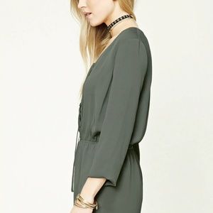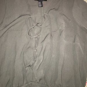 Green romper from forever 21. It is new never been worn. Still has the tag!!! Has no damages it just doesn't fit me. It is lace up