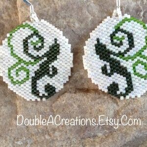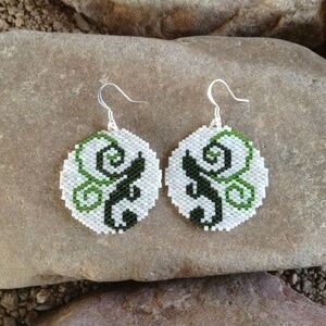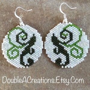 Here’s a pair of Green Scroll Round Beaded Earrings are lightweight and comfortable to wear all day long. Made with high quality glass Delica Beads, beaded one bead at a time. Love and passion goes into making my jewelry. This process requires focus, patience and dedication. Each bead is 16th of an inch and can take hours to complete a project.