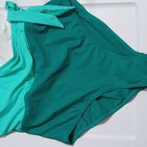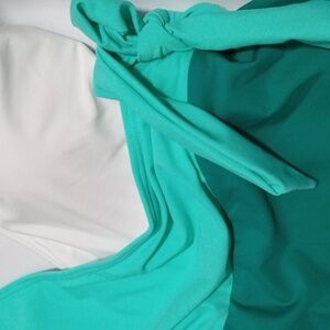 GREEN WHITE COLOR BLOCK V-NECK WRAP TIE ONE PIECE SWIMSUIT SIZE LARGE NWOT
