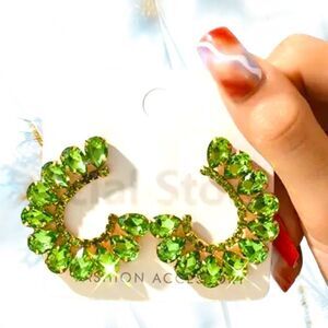 Green Large Luxury Earring 2023 Trendy Design Moon Crystal For Women Holiday Jewelry