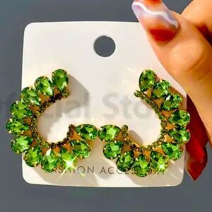 GREEN EMERALD COLORED LUXURY EARRINGS WOMEN CRYSTAL GOLD