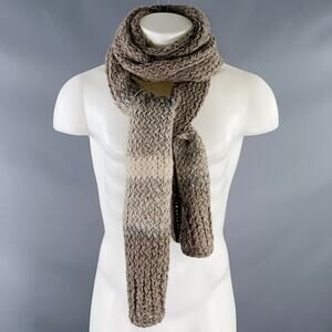 GREG LAUREN Cream Taupe Knit Churro Wool Scarf
