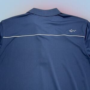 GREG NORMAN GOLF Men’s Large Navy Blue SHARK Polo Shirt