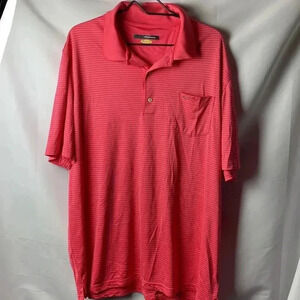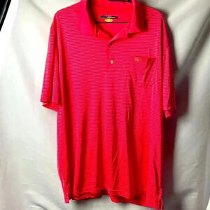 GREG NORMAN PLAY DRY MENS SIZE XXL POLO SHIRT CORAL WITH WHITE STRIPES