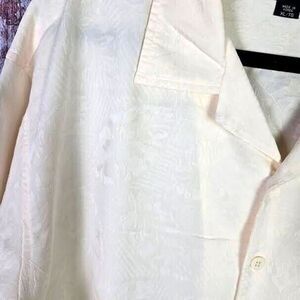 GREG NORMAN Tonal Jacquard Camp Button Down XL Hawaiian Shirt Cream Vellano