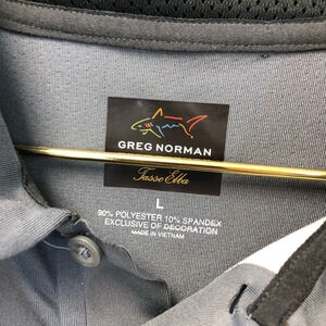 GREG NORMAN grey striped polo shirt large