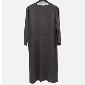 GREI. Minimalist Lagenlook Long Sleeve Shift Dress in Gray - Size Medium. Great pre-owned condition. There is a small spot on the bodice that I'm not sure if it's a stain or a result of the fabric makeup, shown in pic. The fabric dying process results in a marbled effect, shown in pic. GREI. size 2 converts to a size medium. This brand is very conscious of all body types and intent on providing garments that will fit them in comfort. 100% tencel, very flowy, midi length on me and I'm 5'5", long open end sleeves, popover style, side slit at left hemline, unstructured. Approximate measurements: 21" pit to pit, 43" front length, 44" back length.
