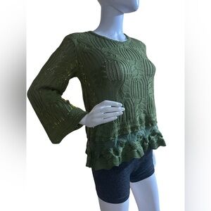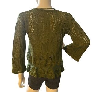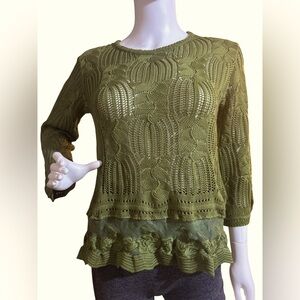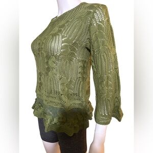 GREIGE Women's Crochet Stitch 3/4 Sleeve Olive Green Medium