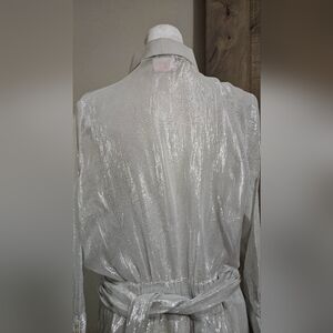 GRETCHEN SCOTT Breezy Blouson Dress- Glinda lurex -silver/white. Size Medium