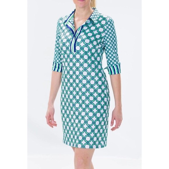 GRETCHEN SCOTT Everywhere Dress Blue Green Women's Size Medium Collared