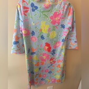GRETCHEN SCOTT Jersey Swing Dress Split Neck Birds Bees Knee Length size XS