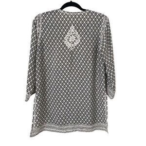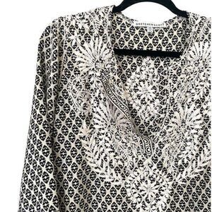 Black and white bohemian style top. Embroidered. V-neck. Very soft 100% polyester. Great preloved condition - freshly dry cleaned. Size XS