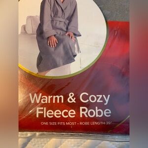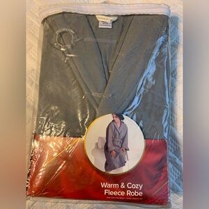 GREY FLEECE ROBE with cuffs. New! 39 in. long. Gray. Sz One size fits most.
