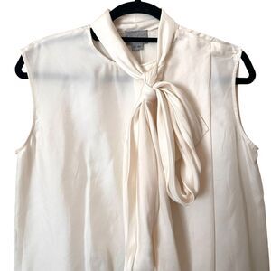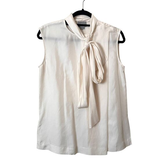 GREY JASON WU Tie Neck Ivory Sleeveless Silk Blouse NWOT Small
