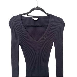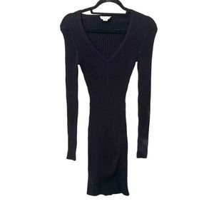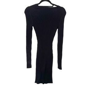 Black long sleeve sweater dress. Scoop neck. Knee length. Stretchy, ribbed bodycon fit. Great preloved condition - size small